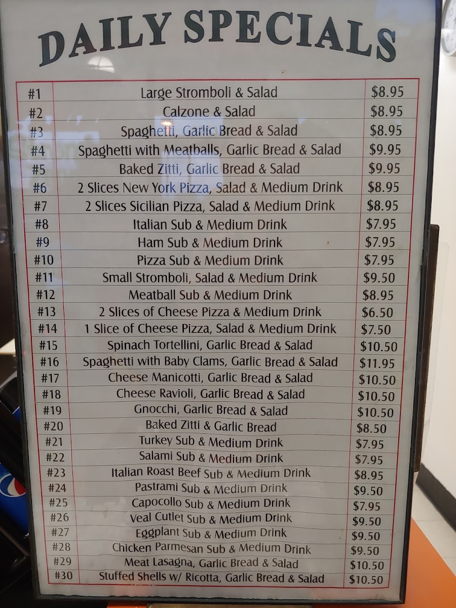 On the menu, you’ll find a delicious variety of offerings, starting with their renowned New York Style Pizza for just $27.95, which boasts an ultra-thin, crispy crust that is simply irresistible. For those who crave something truly special, the Special Pizza at $36.95 is a wondrous creation that combines the finest ingredients into one spectacular pie. If vegetables are your delight, the Veggie Pizza satisfying enough at $33.95 awaits, along with a lavish White Pizza and Sicilian Style Pizza, both offering a taste of Italy like no other.